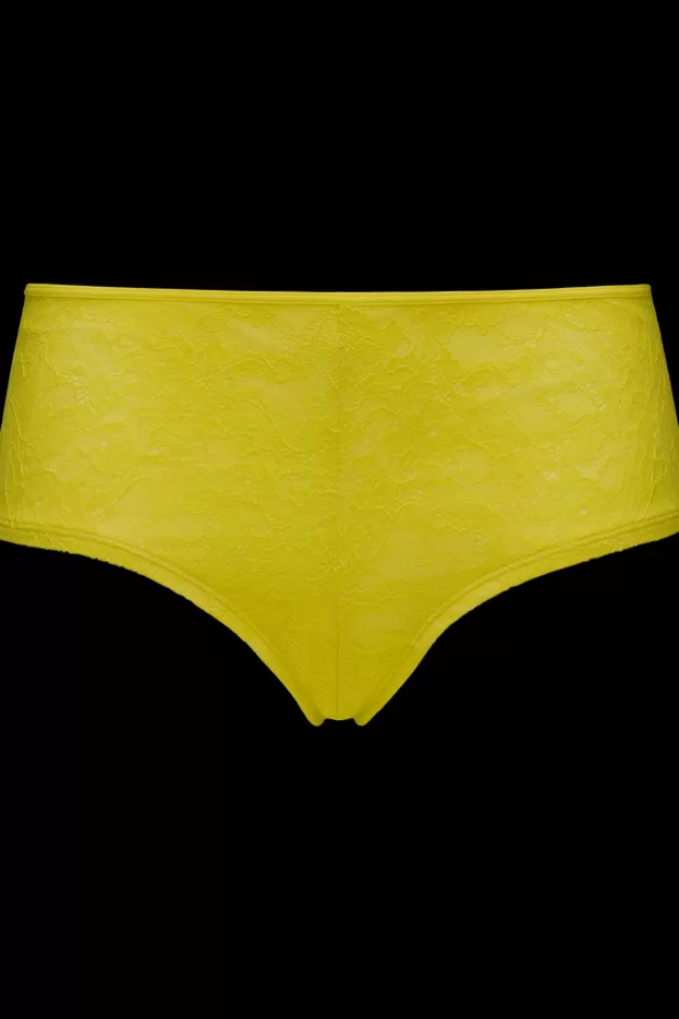 Ces shorts brésiliens en dentelle jaune offrent une couverture confortable pour vos hanches, votre aine et vos fesses, ce qui les rend adaptés à tous les types de corps. La dentelle jaune recyclée est posée sur un tissu de haute qualité dans une teinte contrastée pour faire ressortir le motif. L’arrière de ces shorts sexy est fini avec des sangles sensuelles et un ornement inspiré du vaisseau spatial en jaune assorti. Ces culottes flatteuses sont l’ajout idéal à votre collection de lingerie, vous permettant de vous sentir bien tout en étant écologique.