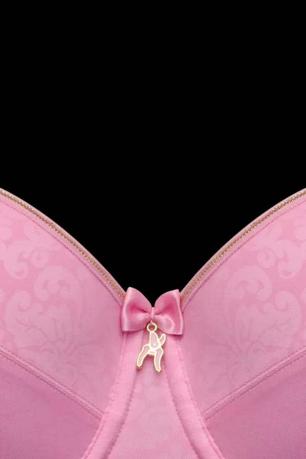 Ce soutien-gorge balconnet a un fit favorable et confortable qui crée un décolleté subtil. Il est fabriqué d’un tissu brillant dans la plus jolie poudre rose. Une technique d’impression de-luster est utilisée pour créer un motif de tourbillons mates dans le rose assorti. Les bretelles tissées, qui présentent une citation ludique, sont attachées à des détails spectaculaires à lacets en satin à l’arrière. Les lacets sont tissés à travers des œillets parfaitement alignés, dégageant de la finesse féminine. Les détails de couleur d’or et un petit arc sont la touche finale de ce soutien-gorge féminin confortable.