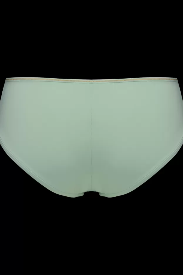 Ces slips brésiliens accentuent vos fesses en laissant la moitié inférieure de vos fesses exposées. La moitié supérieure de vos fesses et votre aine sont couvertes, ce qui rend ces slips confortables et très flatteurs. Les slips sont fabriqués de tissu de haute qualité dans une magnifique teinte verte douce. À l’avant, un tissu en maille recyclé avec deux impressions est ajouté pour donner quelque texture au design: un imprimé de flock allover avec des trèfles et une impression avec des points dorés étincelants.