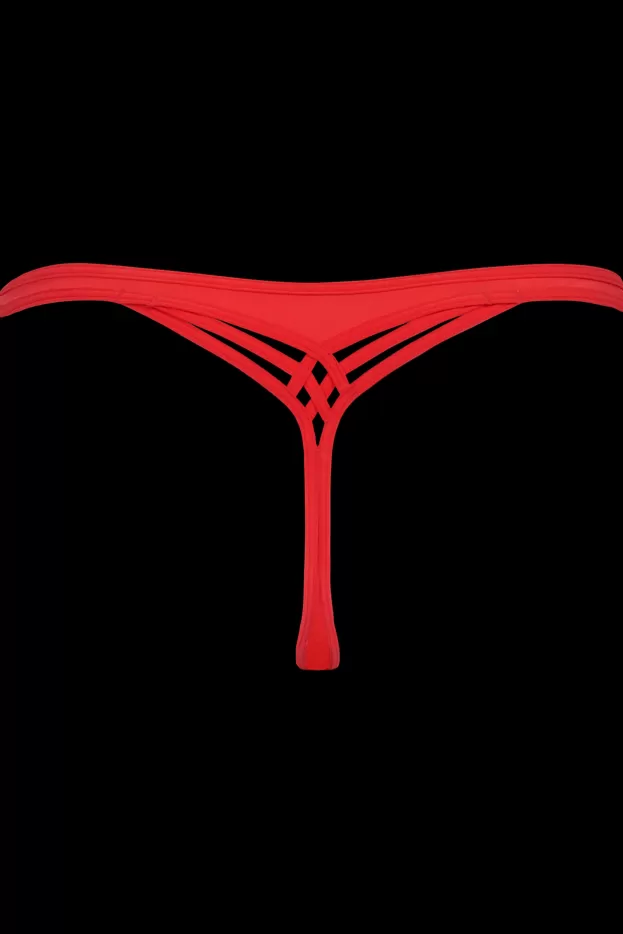 Les côtés de ce string rouge mesurent 2 cm. Le fabuleux jeu de lignes qui orne le dos de ce sous-vêtement fait référence à la glorieuse Cathédrale Notre-Dame. Les parties supérieures des hanches sont couvertes. Choisissez-le pour que votre postérieur accroche insolemment le regard.