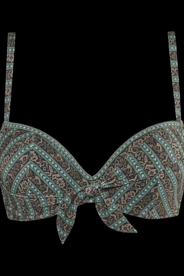Créez un décolleté profond et sexy avec ce haut de bikini push-up. Des coussins souples placés à l’intérieur des bonnets offrent du relief à votre poitrine. Fabriqué dans un tissu en polyamide recyclé, ce haut est doté d’une impression numérique durable conçue en interne. En faisant le choix de l’impression numérique, nous économisons entre 50 et 60 litres d’eau par mètre de tissu. Une boucle nouée au centre de votre décolleté complète le design.
