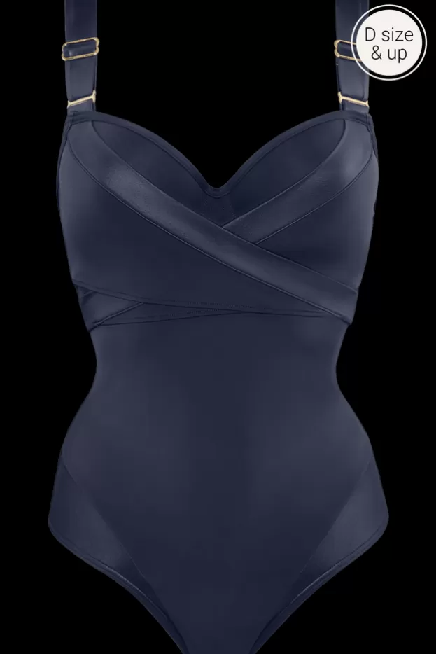 Rationalisez votre silhouette avec ce magnifique maillot de bain de balcon à plongeon. Le sommet crée un décolleté subtil et les bretelles audacieuses offrent un support maximal. Ce maillot de bain gris en acier est fabriqué à partir de tissu recyclé. Un